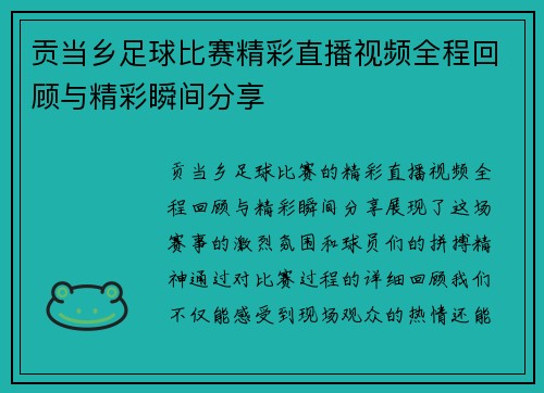 2025-08-12 16:35:14大庆足球比赛精彩直播回放全程回顾与精彩瞬间分析,旨在对近期举行的大庆足球赛事进行全面的回顾与分析。本文将从赛事背景、精彩瞬间、战术分析和球员表现等四个方面深入探讨。在赛事背景中,我们将回顾这场比赛的历史意义及其对当地足球文化的影响;在精彩瞬间部分,将选取比赛中的关键时刻进行详细解读;接着,我们将通过...