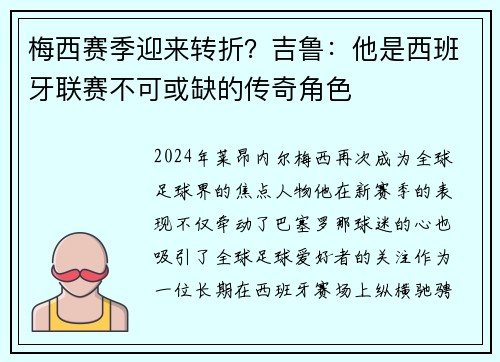 梅西赛季迎来转折?吉鲁:他是西班牙联赛不可或缺的传奇角色